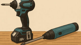 以前は18Vインパクトを使っていましたが、軽量化のためにペン型へ変更しました。
